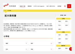 拡大教科書を発行している教科書会社のホームページへリンクします。 拡大教科書のサンプルをご覧ください。